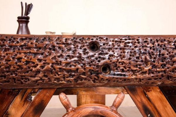 可以选择一些比较优质的船木进行加工。比如说一些密度比较高然后硬度比较大的还有就是本身具有一定的油性的船木做成船木家具就会特别理想,还有一些是有蜡质的感觉的,都是很好的原料。比如柚木或者是榆木等等,一定都是非常理想的原材料。因为经过了几十年的风吹雨打,这些船木是非常老旧的,不懂得的人都会把它看成是一块烂木头。