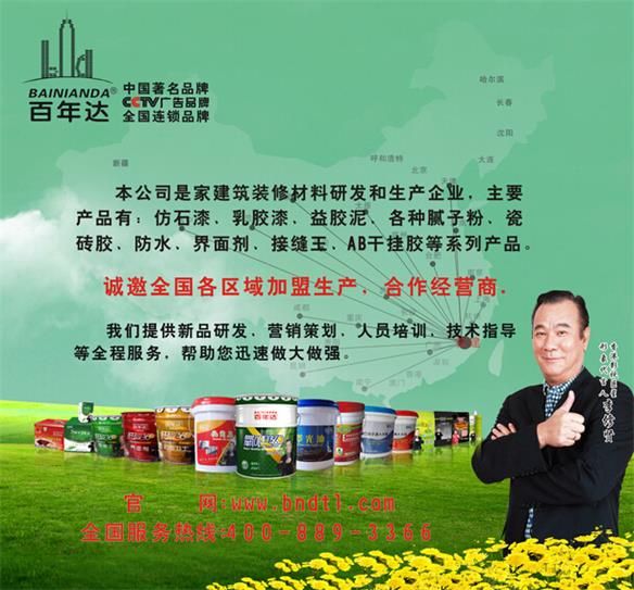 百年达腻子粉加盟,提供百年达粗底腻子粉、找平腻子粉配方,腻子粉品牌全国连锁。