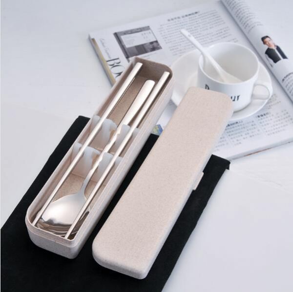 小麦便携餐具盒 旅行餐具套装 304不锈钢餐具