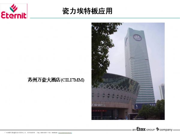 埃泰集团是一家比利时国际工业集团,成立于1905年,生产和销售各种优质建筑材料和系统,如屋面材料、建筑装饰板材,地面和墙面材料等,更是水泥纤维制品的先驱,在科技英语字典中,“ETERNIT”便是水泥纤维制品的意思。埃泰集团在全球各地44个国家共有116间分公司,均在当地的市场中处于*地位,集团的员工总数超过14,842人。