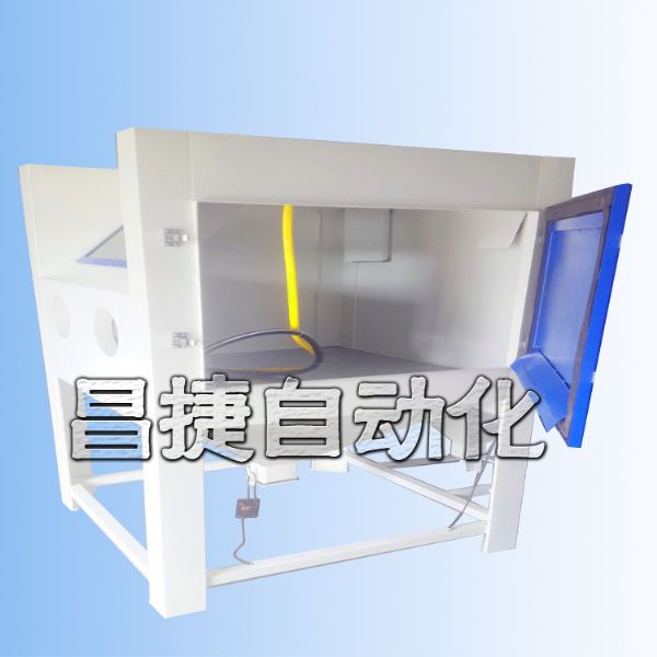 推车转盘手动机简介: 1可加装活动台车和转盘,操作时仅需将工件放在台车转盘上,然后将推入机内即可从事喷砂..