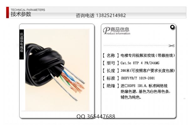 双钢丝 多股纯铜芯电梯数字专业监控电梯网线,内有4对双绞线,可以同时传输4路视频信号,或3路视频、1路控制信号;而且网线比同轴电缆更好敷设。