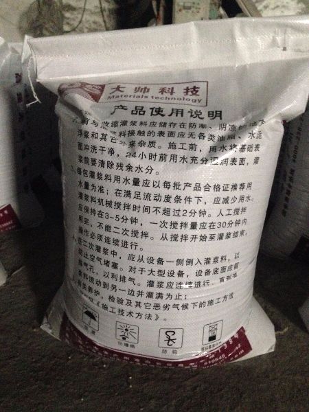 产品用途: 1、用于设备基础二次灌浆。 2、用于地脚螺栓锚固及钢筋栽埋。 3、用于混凝土结构加固和修补。 包装贮运 1、包装规格:50kg/袋,存放在通风干燥处并防止阳光直射。 2、保质期为3个月,超出保质期应复检合格后方可使用。 3、不含有苯系物、卤代烃、甲醛、重金属等成分,*、无味、*、不燃不爆,可按一般货物运输 广州大帅建筑材料技术有限公司 专业的灌浆料生产厂家(主要应用于 路桥修补、高铁动车、高速公路、水利水电、 电厂、旧楼改造加固、大型机械底座材料、工业地坪和耐磨系列等等……(严格执行*新国标,可以取样测试!) - 广西大帅建筑材料技术有限公司