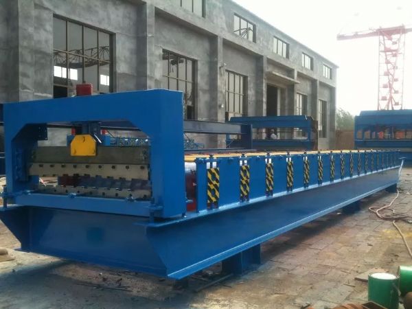 成型、后成型切割组成,所生产的产品外观平整美丽、漆纹均匀、强度高、经久耐用,广泛应用于工业民用建筑,如厂房、仓库、机车库、飞机库、体育馆、展览馆、影剧院等房面和墙体。其组成部分包括:整机、PLC电脑控制系统、液压泵站系统、全自动后剪切系统设备特点:该彩钢板设备采用高水平自动控制软件,实现生产信息化管理。整个机组自动化控制系统采用高集成的网络,使自动化系统性能更优越。该彩钢瓦设备还具有操作、维护、保养以及机械的调试、模具更换容易等优点