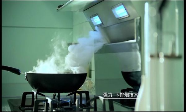 这是风神 T7 的配置,从配置表来看,风神 T7 与上一代产品的主要改变,是把原有的双叶轮两风轮,换成了双叶轮四风轮,抽烟速率自然得到加强。单就抽烟效果来看,几乎和 T9 没有区别,油烟无外溢。但速率明显提升,油烟刚升起,就被迅速抽走。