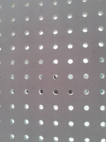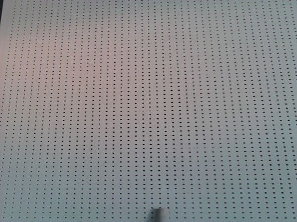 (一)是吸声穿孔纸面石膏板和吸声穿孔装饰石膏板的统称。石膏板本身不是吸声功能突出的材料,在板面上冲孔打眼之后,使每个孔跟与其背后的空气层构成共振 吸声结构。为了防止杂物通过穿孔散落,通常在板背面粘贴一层膜状材料(如皱纹纸、桑皮纸、微孔玻纤布等),起着一种薄膜共振吸声作用。如果再在其后装置一些多孔吸声材料 (如玻璃棉、矿棉、泡沫塑料等),能进一步提高吸声效果,尤其是对高频的吸收。因此,在选择时,首先应考虑其吸声功能,其次还应对其规格尺寸和图案色彩作出选择。