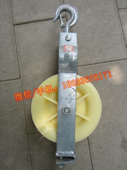 放线滑轮:分为地缆滑轮,电缆滑轮、朝天滑轮、尼龙滑轮、电缆导线放线滑轮,大直径放线滑车、做挂两用放线滑车、地线放线滑车、起重滑轮。 主要用于铺放电缆导线时起到保护的作用,省时省力,地缆滑车的用途: 用于电缆延放改变方向处 , 保护电缆不受摩擦。