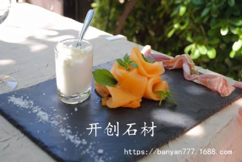 板岩是开采于自然界的石材矿床,经过加工成为个多系列的装饰建材。板岩石质坚硬,色泽鲜明,纹理丰富、风格各异。具有抗压、耐磨、耐火、耐寒、耐腐蚀、吸水率低等优点。 板岩的优点:1)经久耐用、不褪色、耐腐蚀、耐风化、强度高、抗冻与抗渗性好。2)绿色环保、无异味、隔热、*、*、无放射性。3)、纹理自然美观、防滑。4)不易粘油污、清水冲洗即可。基于板岩的这些优点。板岩制成的餐盘被广泛应用于高档西餐厅,烘培等