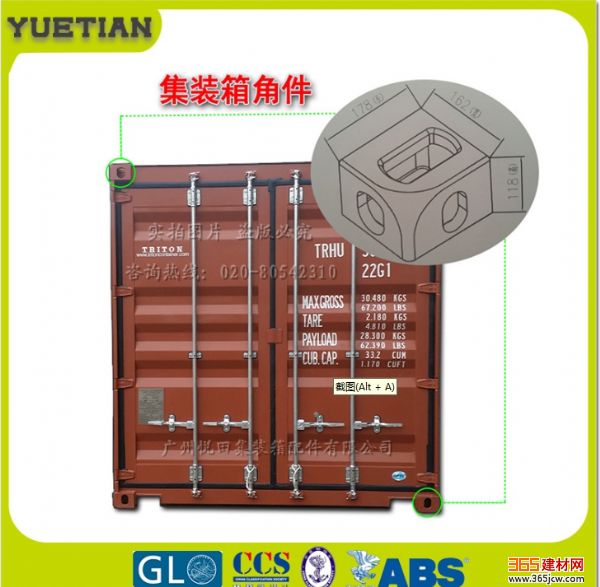 一个集装箱要用八个角件,CDEF在上面,2对AB在下面, 2个A或者2个B, C和E,D和F可以互换。 - 广州悦田集装箱配件有限公司
