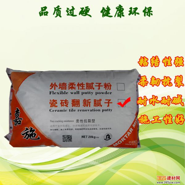 是我公司采用硅酸盐胶凝材料、天然无机矿物、添加高分子聚合物以及功能添加剂研制而成的一种用于外墙瓷砖及石材面旧墙翻新材料。该瓷砖翻新腻子粉具有强度高、不开裂、耐水、耐碱、施工性能好、施工涂膜表面光滑细腻等特点