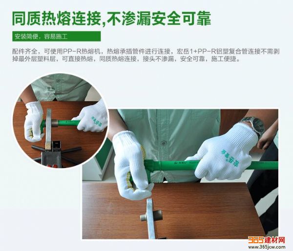 配件齐全,可使用PP-R热熔机,热熔承插管件进行连接,宏岳1+铝塑复合管连接不需剥掉*外层塑料层,可直接热熔,同质热熔连接,接头不渗漏,安全可靠,施工便捷。