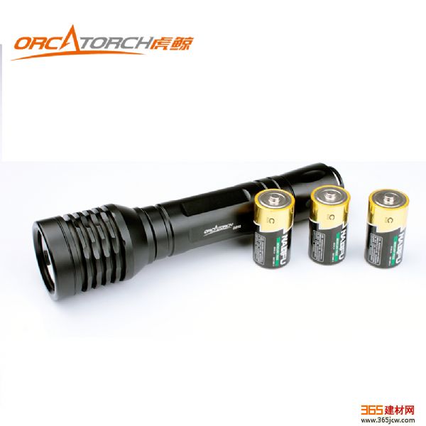 ORCATORCH D510是一款采用机械式旋转开关的技术潜水手电。机械式开关,稳定可靠。采用美国*新的CREE XM-L2(U2) 光源。可输出高达900流明的亮度;使用3节C电池,续航时间长达4小时。配合简约大气的外观、专业的抗压防水结构,相信D510会是您值得信赖的潜水、打猎照明伙伴。