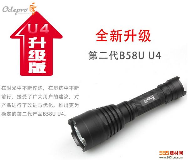 奥德宝Odepro B58U强光远射手电筒,使用美国进口CREE XM-L2(U4) LED,*高可到900流明输出;使用1节18650可充电锂电池,高档位续航时间1.2小时,低档位续航可达15小时;手电筒*远照射距离415米。