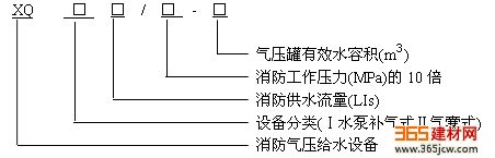 根据现场布局和需要,设备的三大部分(稳压装置、消防泵、电控系统)可分为整体式和分开式结构。型号意义