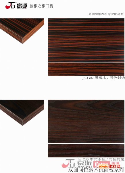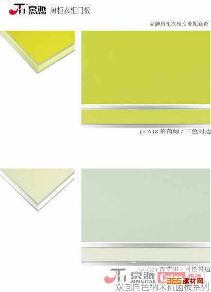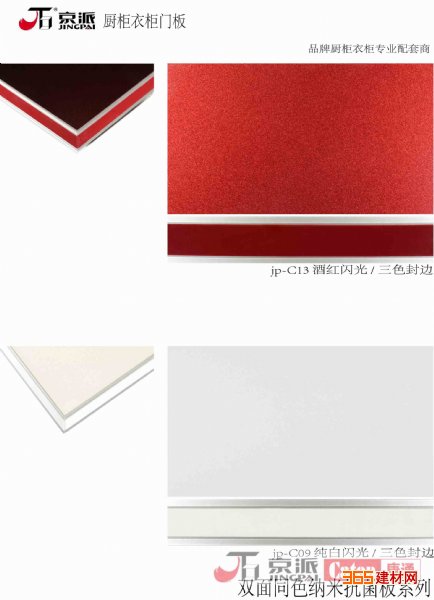 北京京派康通研发制造新推出的双面同色纳米抗菌板,是当今市场上刚刚流行的热门材料,它正面、背面同色,具有高韧、高硬、高强是表面结构材料开发应用的经典,有良好的耐磨耐高温性能,在环保领域也有很广泛的应用,尤其配备独特的三色封边是市场上板式封边门板的一大创举,一经推出受到了广大百姓的信赖,是目前市场上制作高档整体厨柜、衣柜门板*佳的材料之一。