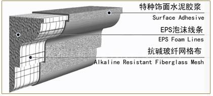 EPS线条是款主要用途于室外装饰的产品,它是一种风格各异的轻质装饰材料,制作出来的外墙透出一种..