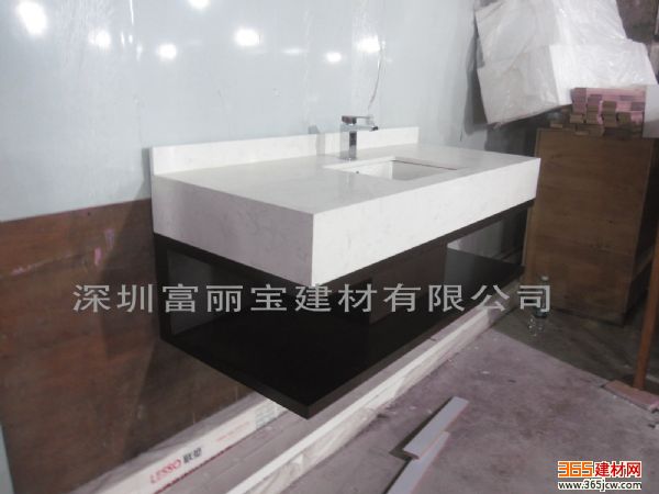 白色石英石洗手台 洗手盆 石英石台面定做