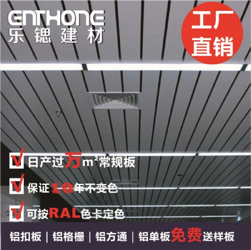 种类繁多,不仅有各式各样的铝单板,冲孔的,不冲孔的;常规的,异形的;艺术镂空铝单板、金属拉网天花等,还有铝格栅、铝扣板、铝方通等。而铝条扣天花板是铝扣板的一种,是比较有特色的产品种类,它线条分明,能够为建筑添加新的特色。铝条扣天花越来越多地作为一种现代建筑装饰材料被广泛应用各种公共场所及家居装修中,人们也渐渐领略和喜欢上它的大气与时尚,随之铝条扣天花有着难以取代的地位和魅力。
