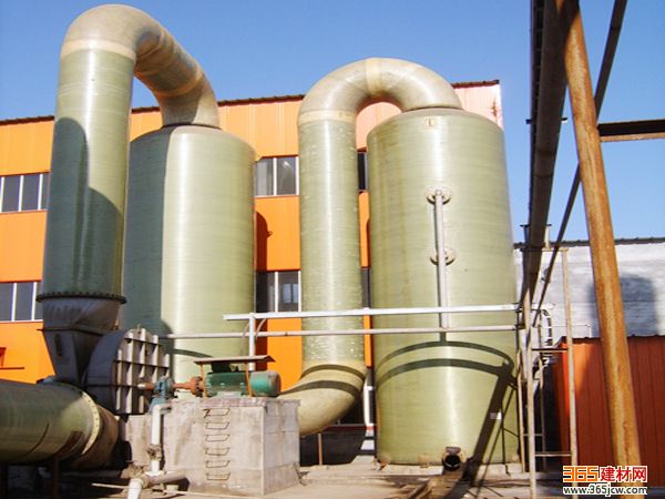 根据净化塔各部件的工作环境,分别选用了耐碱性能好和结构强度高的树脂,外表采用防水、防老化性能好的胶衣树脂。为增强塔体强度,塔体外壳采用了若干纵向加强盘,并根据各种型号的体型大小分别采用了圆筒形双筒体分段与分片相结合的综合结构。因净化塔长期工作在酸碱性腐蚀气体的环境中,除随塔体自身压力及溶液压力外,还要随工作时的风压(风机全压在 200_250H 2 O ) , 要求全部玻璃钢制件既要有良好的耐腐蚀性能,又要保持较高的抗拉、抗压强度,因此,我公司在充分考虑和排除了强腐蚀下的强度折减系数及手糊成型工艺的离散性能因素后,针对塔型结构和使用环境特点,按*恶劣的工作环境下,整个玻璃钢部件及保持富裕的储备强度。