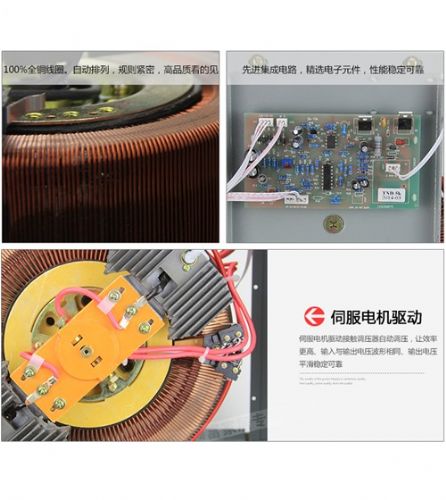 采用线性集成电路组成控制系统,控制伺服电机,驱动接触调压器自动调压,并设有延时、过压、欠压及过流保护功能
