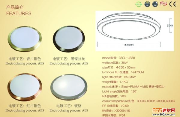 简约现代LED吸顶灯主要材质由高效散热压铸铝底盖和高透光面罩 组成.外观简洁现代.36WLED吸顶灯采用..