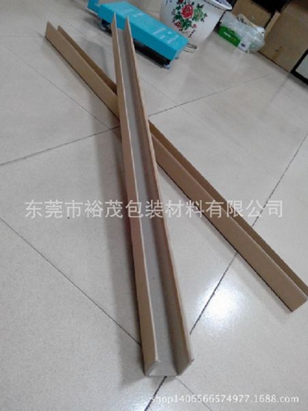 由几张纱管纸和一张牛皮纸叠加粘合压制后,由护角机成型而成,对产品起到支撑防止碰撞、加强边缘保护的作用。长度规格按客户要求,包边方式有两种,一种为半包边,一种为全包边。厚度规格为2mm,3Mm,4mm,5mm,6mm,7mm,8mm。两个边的规格为:*大的边100mm,*小的边30mm,等边的为常用规格,不等边的为非标规格。