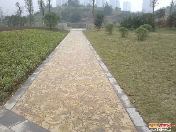 •  这种新型材料由天然环保的矿物骨料和高强耐磨胶凝材料为主要成份,并添加了多种进口外加剂组成的高强度、高耐磨的地坪材料。其优点是易施工、一次成型、使用期长、施工快捷、不易褪色等;同时又弥补了普通彩色道板砖的整体性差、高低不平、易松动、使用周期短等不足;在新铺混凝土的表面形成颜色持久的天然石材外观;与周围景观达到完美融合的艺术效果,并具有颜色丰富压印图案多样的特点;该工艺与新铺混凝土同步施工,方便快捷。采用我公司新型材料制作的压印地坪具有耐磨、防滑、抗冻、易清洁、强度高、、耐候好,且色彩和款式方面有广泛的选择性;其成本低和绿色环保的优点是目前园林、市政、停车场、公园、小区、商业广场和文化设施等地面领域的理想选择。