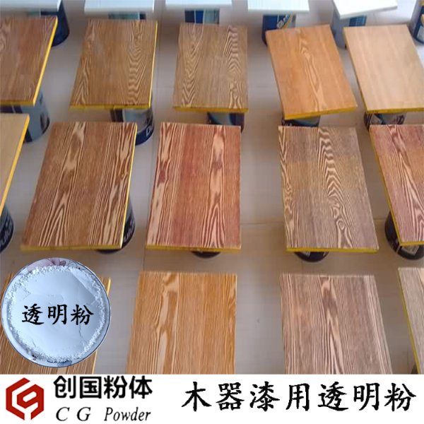 1、透明粉主要可应用于各类油性木器漆透明底漆中,如不饱和聚酯树脂(PE)木器漆、聚氨酯树脂(PU)木器漆、紫外光固化(UV)木器漆、硝基树脂(NC)木器漆、仿古擦色宝(格丽斯)等配方体系中,作为透明型填料与滑石粉一起使用。