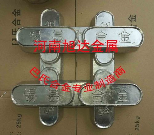 质量标准: 符合GB/T1174-1992标准;性状:块状,具有金属光泽。用途:主要用于水泥厂球磨机设备的球面瓦,船舶螺旋机械轴瓦,轴套;造纸厂打浆机,烘缸机轴瓦;船舶螺旋机械轴瓦,轴套。压缩机械轴瓦、轴套、轧钢机轴瓦、化工机械、石油机械等其它大型机械设备的轴瓦,轴套,轴衬。电梯吊索具所用巴氏合金。