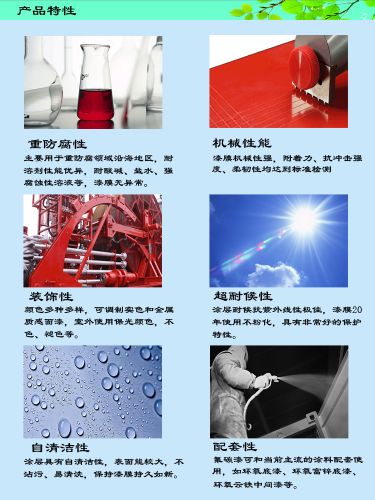产品优点 (1)优良的防腐蚀性能——得益于极好的化学惰性、漆膜耐酸、碱、盐等化学物质和多种化学溶剂..