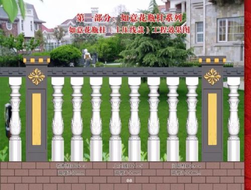 我们提供整套雕花艺术围栏配套的ABS塑料模具,压线模具,间隔柱模具,离心机设备,尺寸都可以随意调节,及从原料到半成品到成品安装的