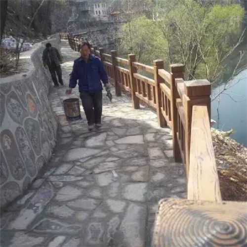 无需砍伐森林树木,无需开山挖石,水泥仿木制品,水泥栏杆,预制水泥仿木河堤护栏,耐腐蚀,观赏性强,安装方便,维护简单,代替天然木材石材的理想产品。水泥仿木制品带您追求生活环境,回归自然生活,质量杠杠滴。