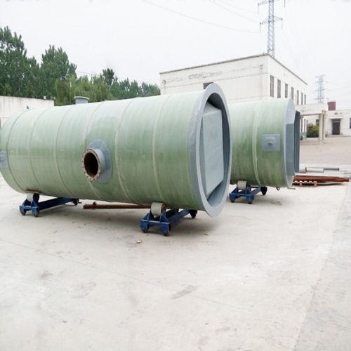 本体是采用玻璃钢纤维机械缠绕工艺,外形为圆筒形,,针对项目需要处理的污水量制定筒体的直径和高度。在筒体上分别留有进水口和出水口,分别和管网连接,污水或雨水通过市政管路自流入泵站玻璃钢筒体,筒体内设有压力传感器或者液位传感器系统,当液位达到一定高度的时候传感器将信号传送到控制系统,控制系统控制潜污泵启动。潜污泵启动后将污水通过不锈钢压力管道提升到泵站筒体的出水口,泵站出水口和市政管网连接,污水进入管网后排放到污水处理站。当筒体内水位下降到一定液位后控制系统发出停泵信号,水泵停止。如此周而复始,为一体化污水提升泵站的整个运行流程。