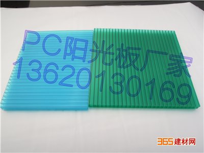 性能:1、质轻:比重仅为一般玻璃的一半,且不易击碎,搬运安装省时省力,尤其适合高大建筑物使用。2、透光性:无色透明阳光板可提供很好的透明度和表面光泽度,着色板能阻挡太阳光中*强的部分,使透过的光线柔和。3、隔音性能:能有效降低噪音,在国际上是高速公路隔音屏障的*材料。4、传热性:有更低于普通玻璃和其它塑料的热导率(K值),从而使热量损失大大降低,用于有暖设备的建筑,属环保材料。5、抗冲击性:PC是热塑性塑料中抗冲击性*佳的一种,由PC制成的阳光板更能在相当宽的温度范围内长时间保持良好的抗冲击性能,有“不碎玻璃”和“响钢”的美称。6、防结露:在通常情况下,当室外温度为0℃,室内温度为23℃,只要室内相当湿度低于80%,材料的表面就不会结露。7、阻燃、防火:有良好的防火性,经国家防火建筑材料监督中心测试,按GB8624——1997标准,达到难燃B1级。板材自身燃点630℃,燃烧过程不会产生有毒气体,不会助长火势蔓延,离火后自熄。8、抗化学性:在室温下能耐各种有机酸、无机酸、植物油、中性盐溶液、脂肪烃以及酒精的侵蚀。阳光板溶于氯代烷烃,稍溶于芳香烃和酮,能被碱破坏,在天那水、甲醇中会溶胀。(详细看说明)9、冷弯曲安装,耐热、耐寒。规格: 1、双层板厚度4-10mm。*大宽度 2100mm,长度6000mm。(可订做)2、三层板厚度10-16mm,*大宽度 2100mm,长度6000mm。(可订做)3、四层/蜂窝板厚度6-12mm,*大宽度 2100mm,长度6000mm。(可订做)颜色:红色、黑色、湖蓝、蓝色、透明、乳白、草绿、绿色、茶色、灰色、黄色、翡翠绿等