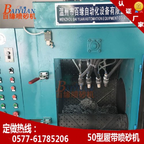 1、本机采用履带带动工件翻转滚动喷砂方式;