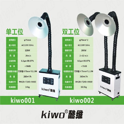 是专门为焊锡烟雾处理而设计的净化设备。焊锡烟雾净化器(焊烟净化器)采用进口高风压,低噪音风机,能有效的吸取烟尘颗粒,并*大限度的延长滤芯的使用寿命。其控制系统采用PWM调速,可根据烟尘产生量实现对风量的连续精确调节;该控制系统设计了指示灯光报警装置,当滤芯堵塞,红色指示灯点亮,提示更换滤芯。该净化机的过滤系统由预过滤层,主过滤层和气体过滤层三部分组成,预过滤层能够吸附气流中比较大的粒子来避免主过滤层过早的被堵塞;主过滤层由HEPA高效过滤芯组成,HEPA高效过滤芯对0.3微米的微粒的过滤效率为99.99%,气体过滤层由化学滤芯组成,能有效的去除气流中的有害气体。