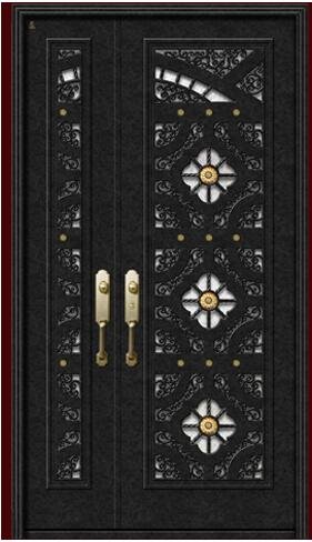 - 厂家直销铁艺进户门 锻打铁艺玻璃双开进户门