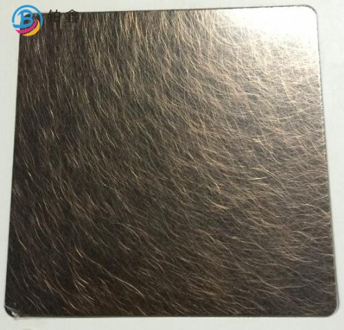 佛山市铂鑫金属材料有限公司主营201 304材质不锈钢彩色板,彩色不锈钢装饰板厂工艺组合有:蚀刻电梯板,ktv冲压门板,局部(乱纹,喷砂,拉丝)板,压纹花板,镭射花板,精磨8k, 拉丝抗指纹(交叉拉丝,斜拉丝)以及屏风制作等组合工艺。高端镀色有:仿红古铜,仿青古铜,红铜,仿黄古铜,水(电)镀黑钛,灰钛,玫瑰金,玫瑰红,香槟金,咖啡金,酒红,宝石蓝,翡翠绿,茶色等。色泽稳定,保证质量,
