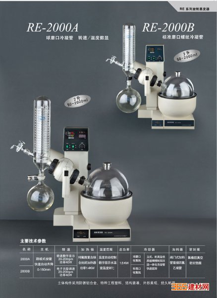 用途简介:是采用旋转蒸发瓶(烧瓶),增大蒸发面积在减压下置于水浴中一边旋转,一边加热的装置,使瓶内溶液扩散蒸发。是化学工业,医药工业,高等院校和科研实验室等单位用于制造及分析实验赖以浓缩,干燥,回收等较为理想的必备基本仪器。