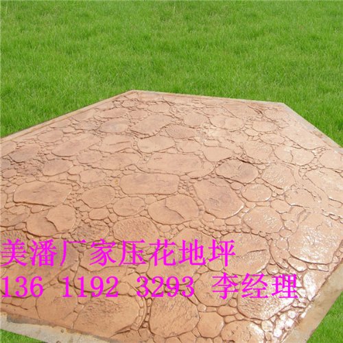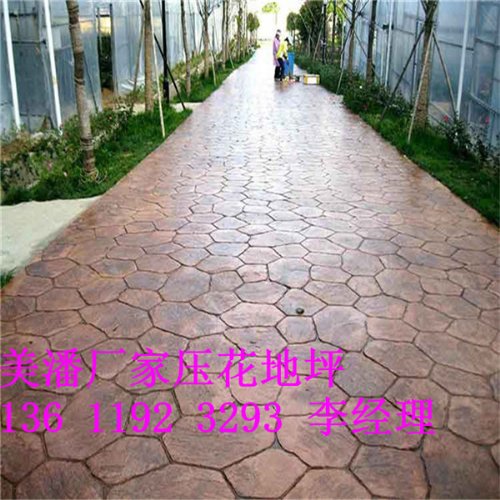 是一种防水、防滑、防腐的绿色环保地面装饰材料,是在未干的水泥地面上加上一层彩色混凝土(装饰混凝土),然后用*的模具在水泥地面上压制而成。彩色混凝土艺术地坪(又称压模地坪、压花地坪、压印地坪)是在铺设现浇混凝土的同时,采用彩色强化粉、脱模粉、保护剂和模具来装饰混凝土表面,以混凝土表面的色彩和凹凸质感,表现天然石材、青石板、花岗岩甚至木材的视觉效果。压花地坪能使水泥地面**地呈现各种色泽、图案、质感,逼真地模拟自然的材质和纹理,随心所欲地勾划各类图案,而且愈久弥新,使人们轻松地实现建筑物与人文环境,自然环境和谐相处,融为一体的理想。