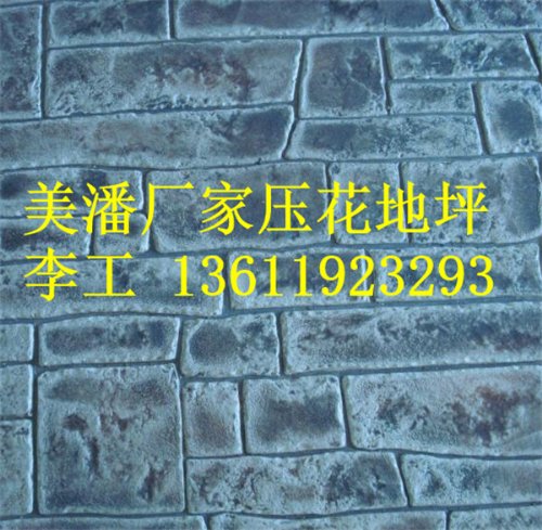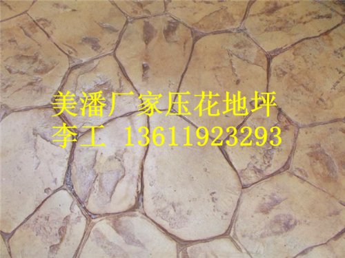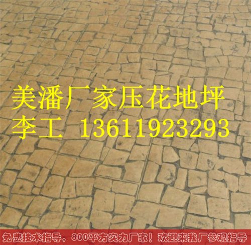 耐磨、耐压、止滑等特性更是它的优点。彩色压花地坪优点多多:图案和颜色任意组台,整体成型一次性铺装完成抗压强度一般可达普通混凝土的3倍以上,耐磨性好使用无机颜料,色泽牢固持久,耐紫外线好,适合国内复杂多变的温度、湿度等气候条件防油、防水、防滑,表面不会开裂、脱落、褪色