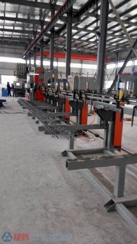 钢筋桁架楼承板是属于无支撑压型组合楼承板的一种;钢筋桁架是在后台加工场定型加工,现场施工需要先将压型板使用栓钉固定在钢梁上,再放置钢筋桁架进行绑扎,验收后浇筑混凝土。实现了机械化生产,有利于钢筋排列间距均匀、混凝土保护层厚度一致,提高了楼板的施工质量。装配式钢筋桁架楼承板可显着减少现场钢筋绑扎工程量,加快施工进度,增加施工安全保证,实现文明施工。装配式模板和连接件拆装方便,可多次重复利用,节约钢材,符合国家节能环保的要求。钢构自主研发的产品配套自动化生产设备,大大提高了劳动生产率,有效降低了产品成本,并编制了产品生产企业标准、设计手册和节点构造图集以及施工手册。该产品通过浙江大学土木工程测试中心检测,并经过多项工程应用,各项性能可以满足现浇钢筋混凝土楼板承载力和变形的要求。