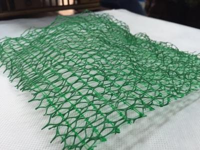 是以热塑性树脂(聚乙烯)为原料,采用科学配方,经挤出、拉伸、点焊等工序精制而成,成凹凸泡状的多层三维网结构,它无腐蚀性、化学性质稳定,对大气、土壤、微生物呈惰性。