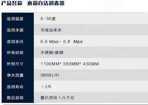经水箱自洁消毒器处理后,可保证水质的细菌、大肠杆菌、余氯指标符合《生活饮用水卫生标准》(GB5749-85),也可保证水箱、水池符合《二次供水设施卫生规范》(GY17051-1997)