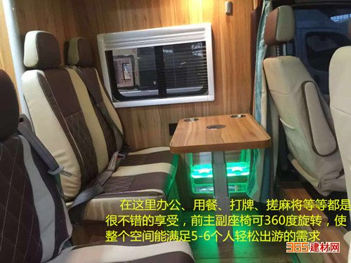 作为一款出行游玩的房车,休闲娱乐也是必不可少的,中门餐桌桌板得到了很大的改善,可以上下升降,可以在这里办公、用餐、打牌、搓麻将等等,也可以在这里布置床铺等。这款东风御风房车副驾驶特意安置了双人卡座,副驾采用单人座椅,副驾驶安置双人卡座的为3座,前主副座椅可360度旋转,使整个空间能满足5-6个人轻松出游的需求。