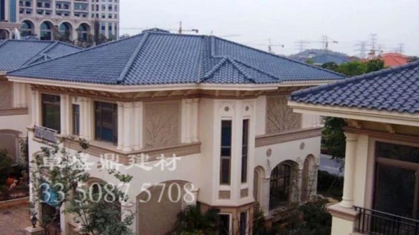 高分子材料的琉璃瓦环保性能优越,经高温模压成型,生产过程无传统屋面瓦的烧制或化学反应。现代高端别墅建筑选用琉璃瓦做屋面材料是明智的。