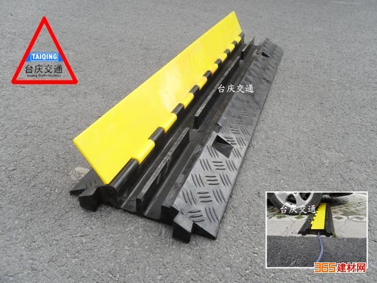 由上海台庆交通设施有限公司开发出品橡胶电缆线槽板 ,获国家专利,通过国家技术监督局检验,并颁布检验报告证书,是客户对橡胶舞台演出电缆过线板使用安全和高品质的*佳*!另底部强附着力设计,任意摆放安装,无需螺栓破坏地面及使用工具,也可防止跑动移位,切实保护电缆的使用安全。 - 上海台庆设施交通有限公司