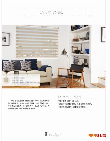 是由宽度相等的面料和纱布相互间隔织成的一种纺窗饰,其集合了布艺的温馨,卷帘的简易,百叶帘的调光功能融为一体。操作简单,遮光形式多样化,完全不妨碍视野,是家居窗饰的理想选择。 - 上海帘扬窗饰有限公司