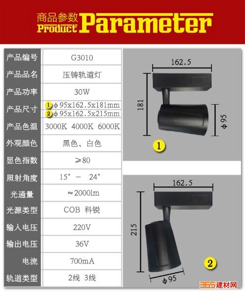 尺寸 φ95x162.5x181,φ95x162.5x215(mm) 发光角度 15-24(度) 寿命 30000(H)