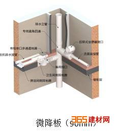 具体做法是卫生间的结构楼板下层(局部)300mm作为管道敷设空间。下沉楼板采用现浇混凝土并做好防水层,按设计标高和坡度沿下层楼板敷设给、排水管道,并用水泥焦渣等轻质材料填实作为垫层,垫层上用水泥砂浆找平后再做防水层和层面。采用这种方式时,应该使用一种叫“多功能专利地漏”的管配件。